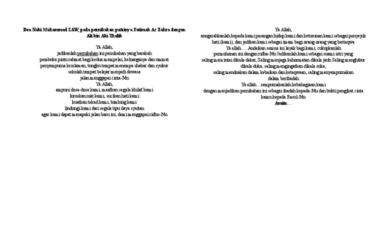Fatimah az zahra memiliki kepribadian yang sabardan penyayang karena dan tidak pernah melihat atau dilihat lelaki yang bukan mahromnya. Doa nabi muhammad saw pada pernikahan putrinya fatimah az zahra dengan ali bin abi thalib ya allah jadikanlah pernikahan ini pernikahan yang barakah pembuka pintu rahmat bagi kedua mempelai keluarganya dan ummat penyempurna keislaman tungku tempat menempa shabar dan syukur. Listen to official albums more.