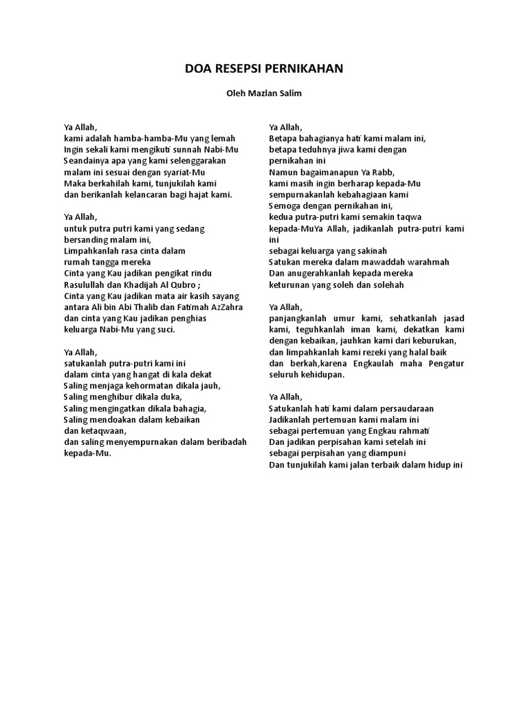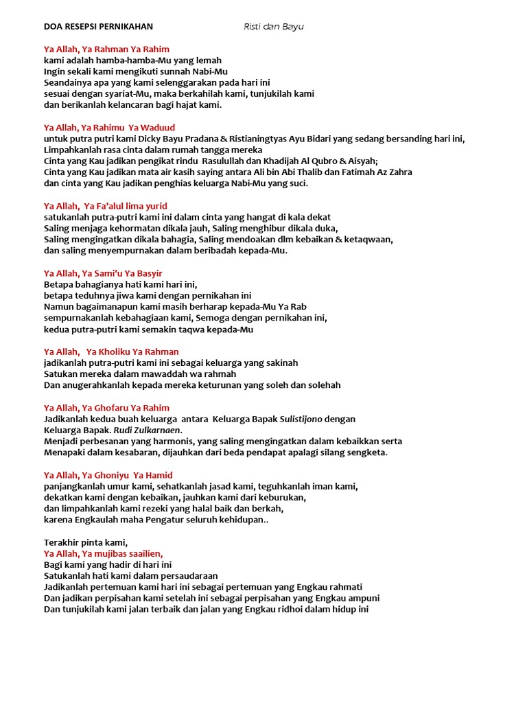 Doa Resepsi Pernikahan Pdf Document